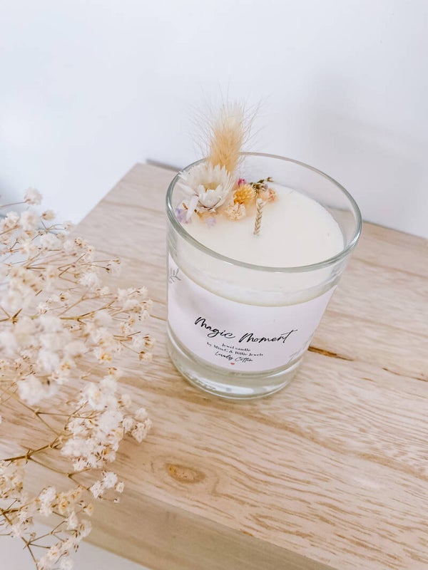 Het perfecte geschenk om cadeau te geven of jezelf mee te verrassen. Want wat beters dan een kaars + bloemetjes + een juweel allemaal verwerkt in éénzelfde geschenk.