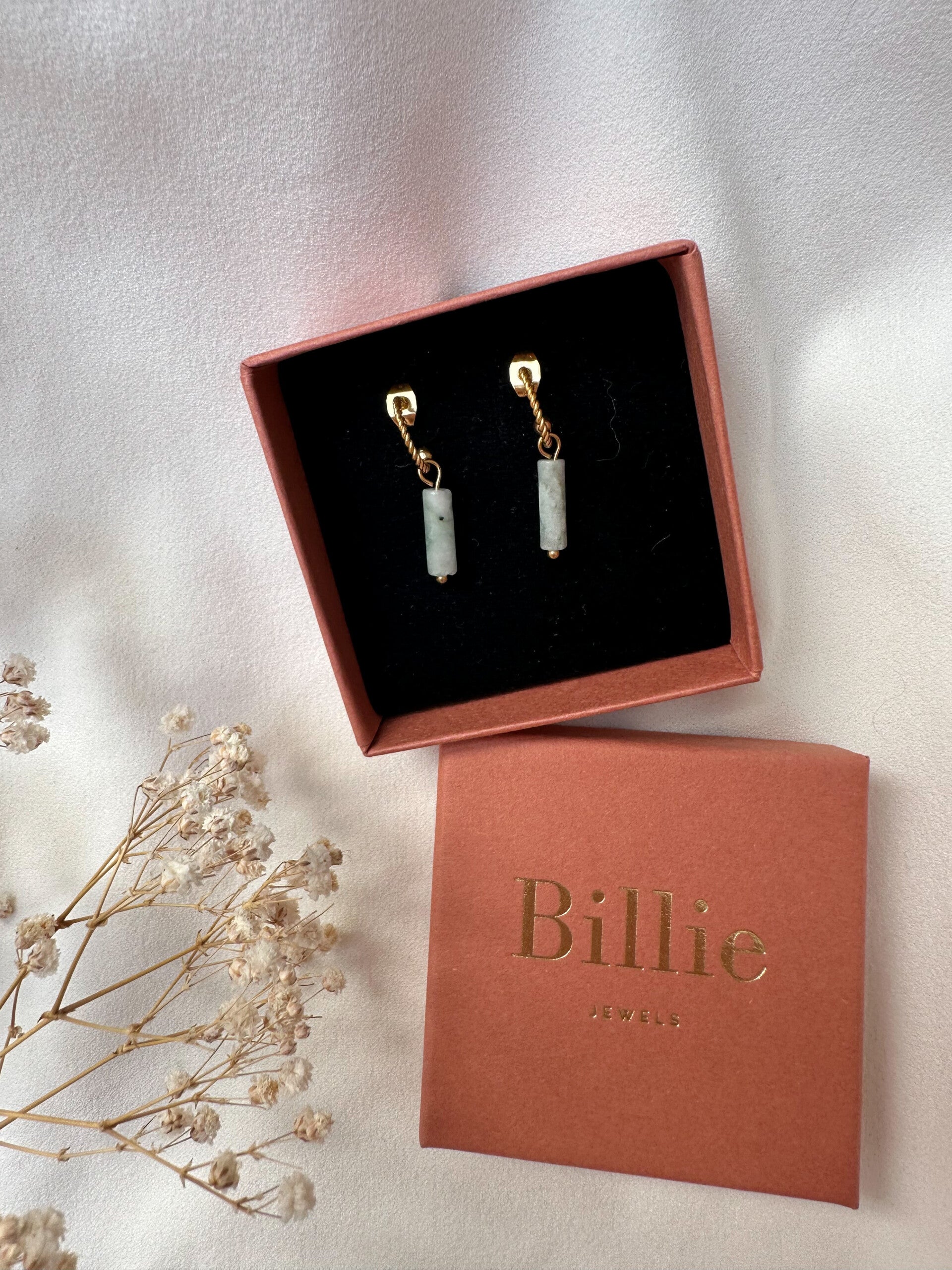 Gouden oorbellen met groene natuursteen