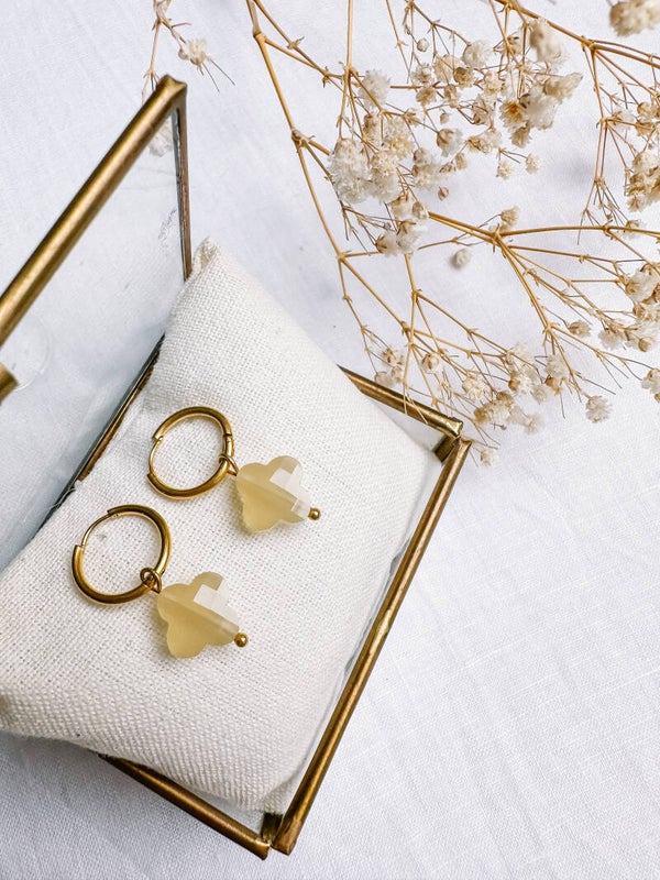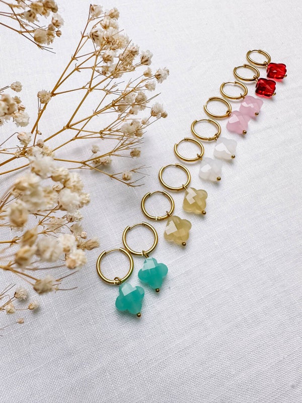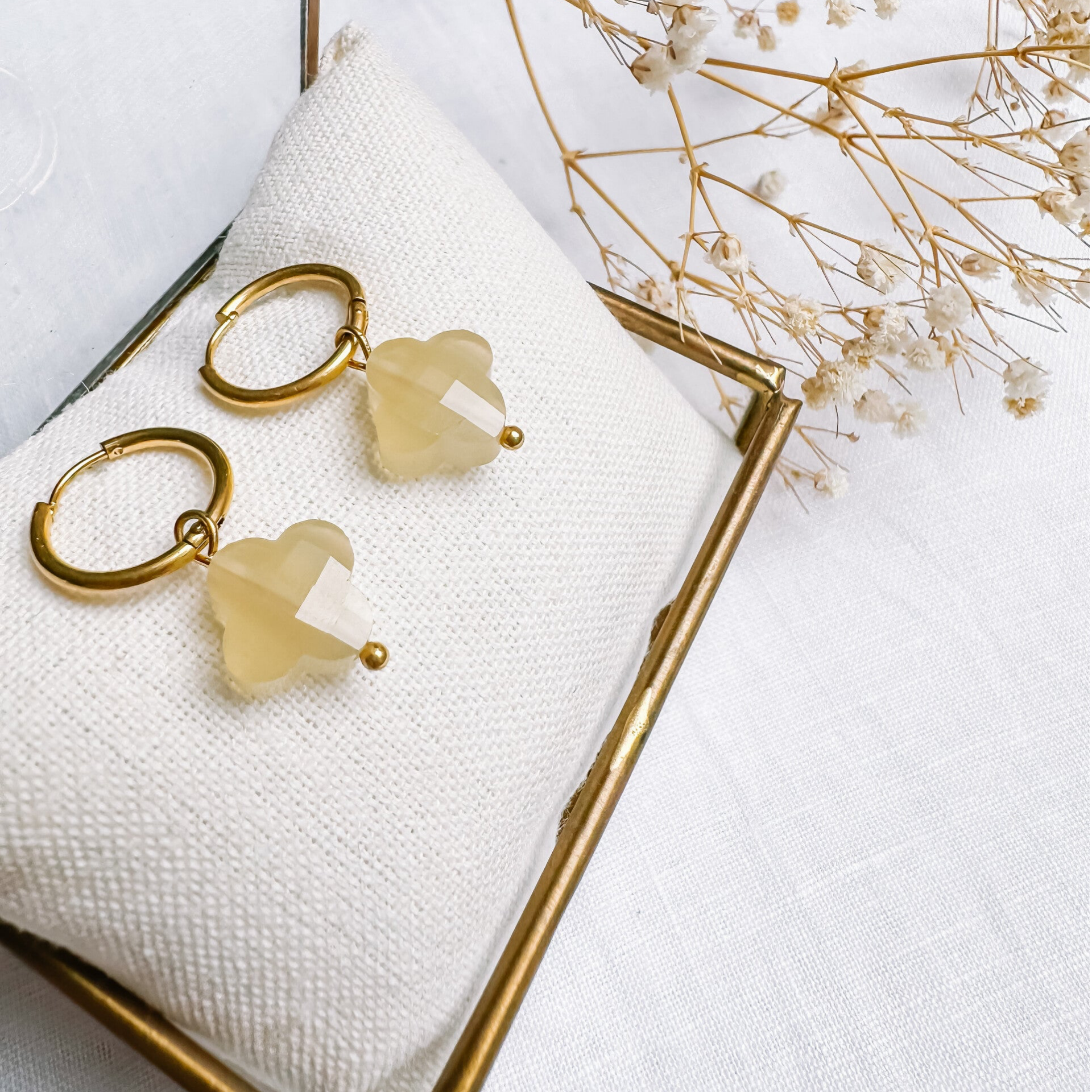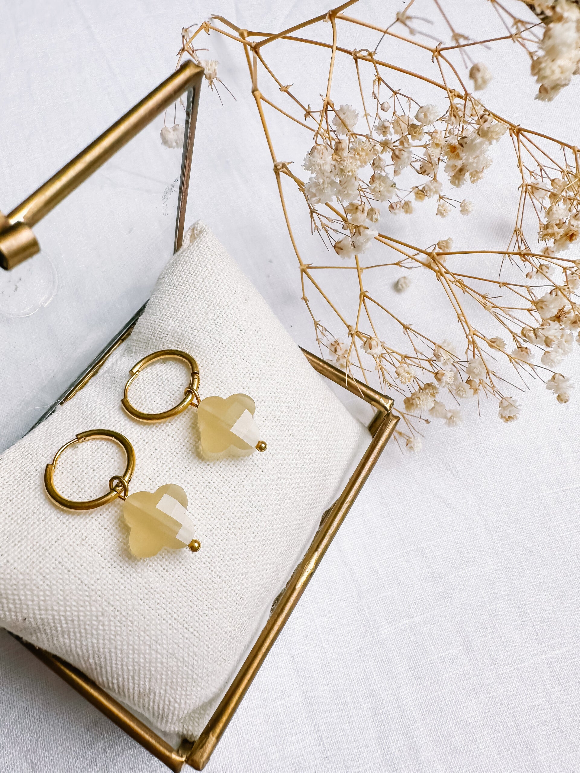 Mooie oorbellen gemaakt uit stainless steel met honingkleurig crystal bedeltje.