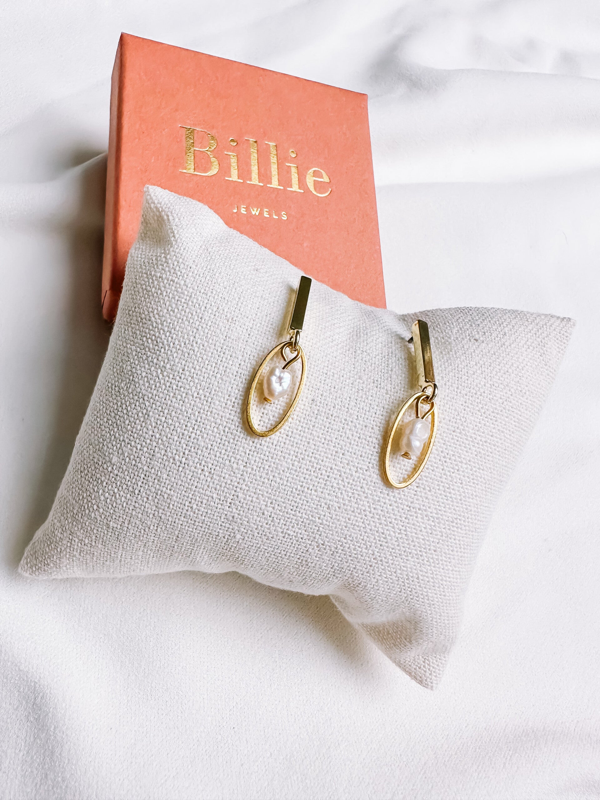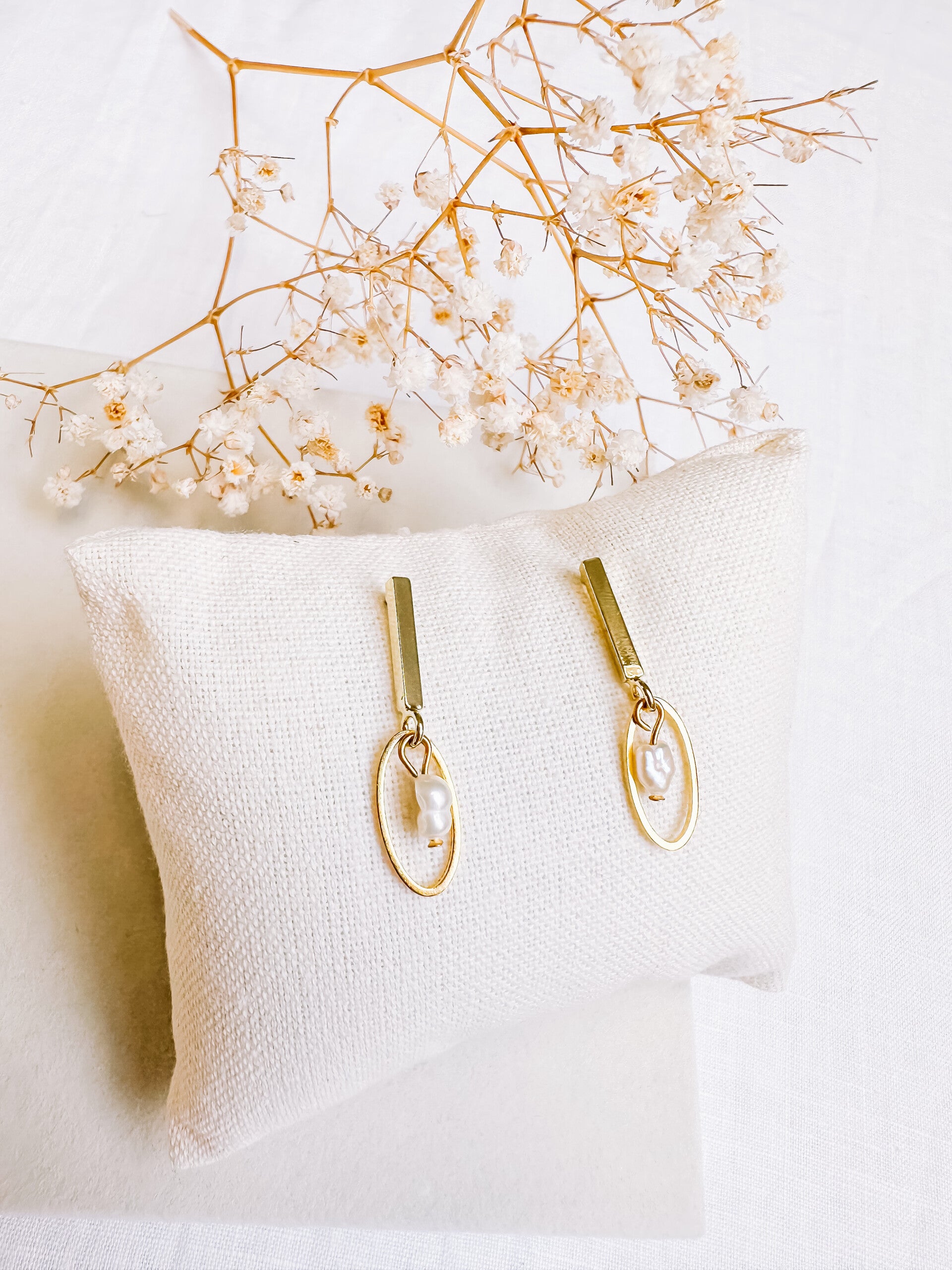 Mooie oorbellen gemaakt uit stainless steel met zoetwaterparel bedeltje.