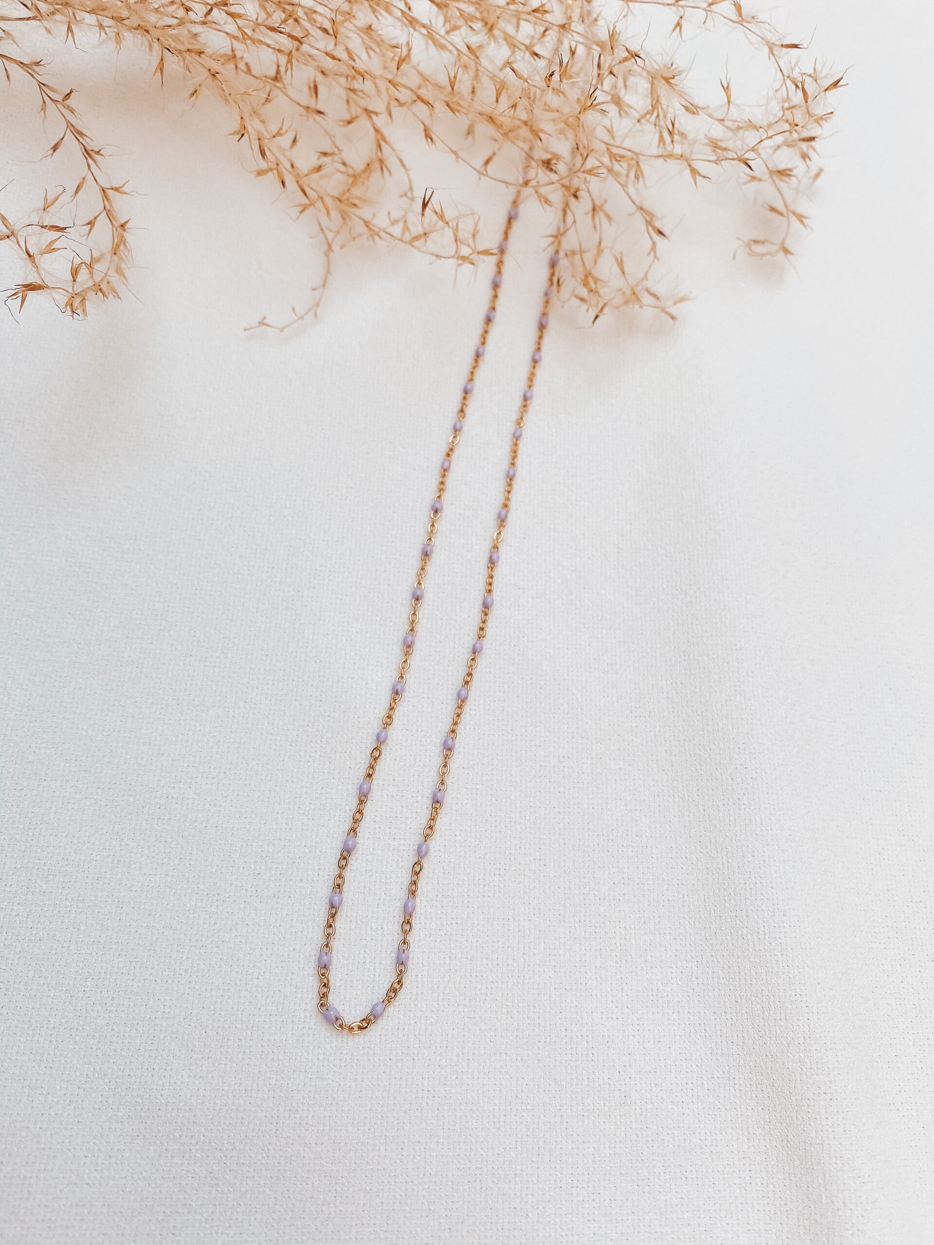Mooie ketting gemaakt uit stainless steel met lila accentjes