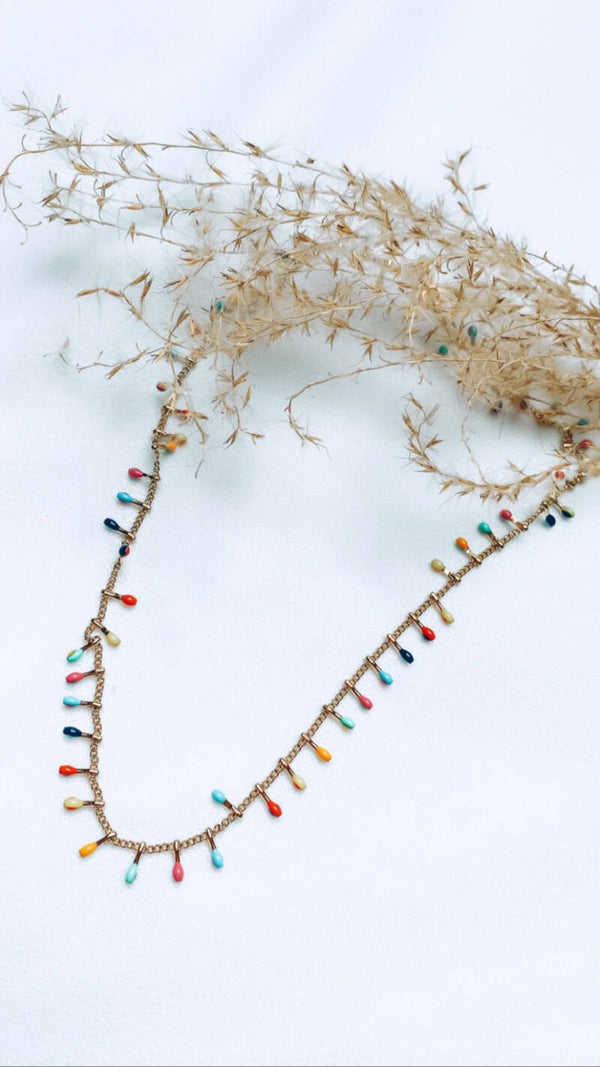 Prachtige ketting gekleurde ketting. Vrouwelijk en elegant.