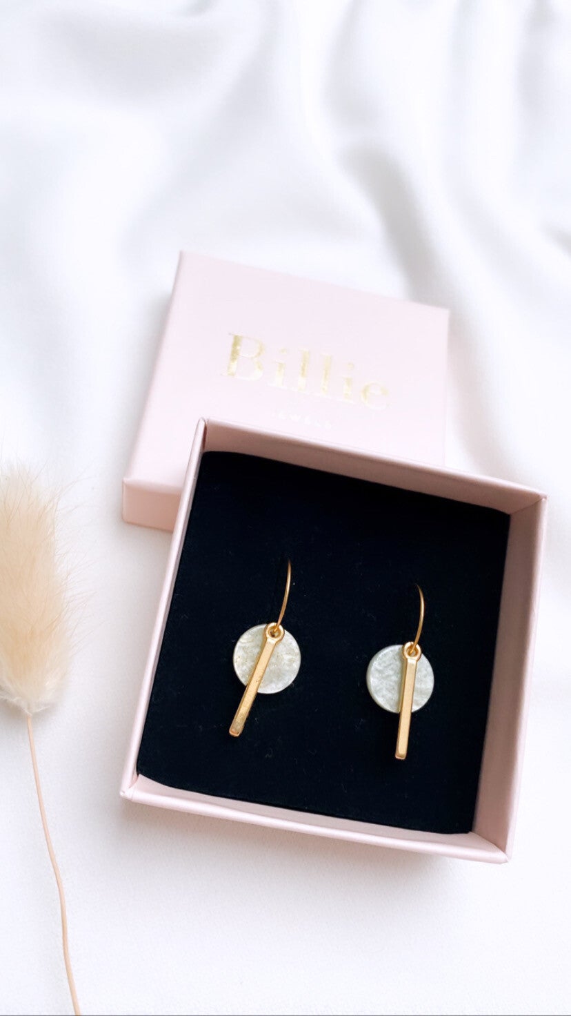 Mooie stalen oorbellen met bedel in hars, kleur: groen