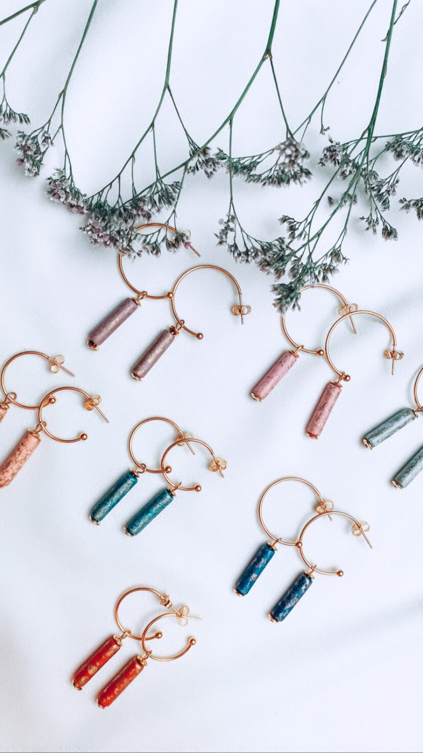 Mooie stalen oorbellen met hanger gemaakt uit keramiek. Je kan kiezen tussen een grote of kleinere creool.