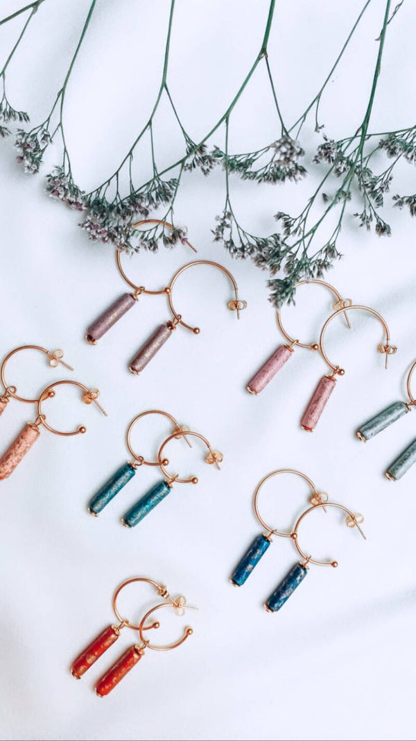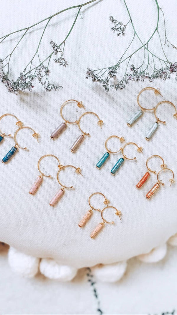 Mooie stalen oorbellen met hanger gemaakt uit keramiek. Je kan kiezen tussen een grote of kleinere creool.