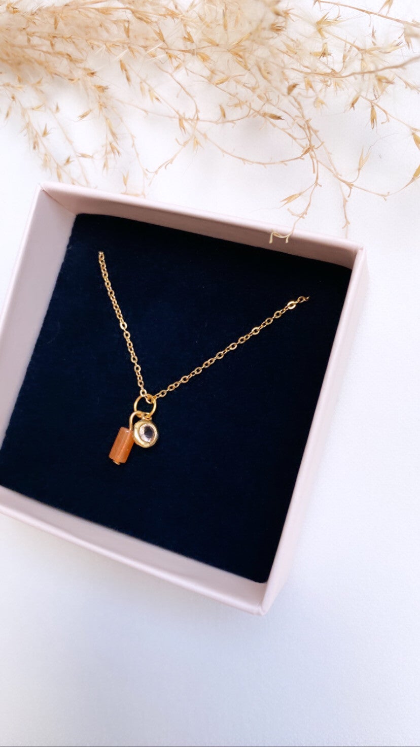 Mooie ketting gemaakt uit stainless steel met gekleurde hanger uit natuursteen