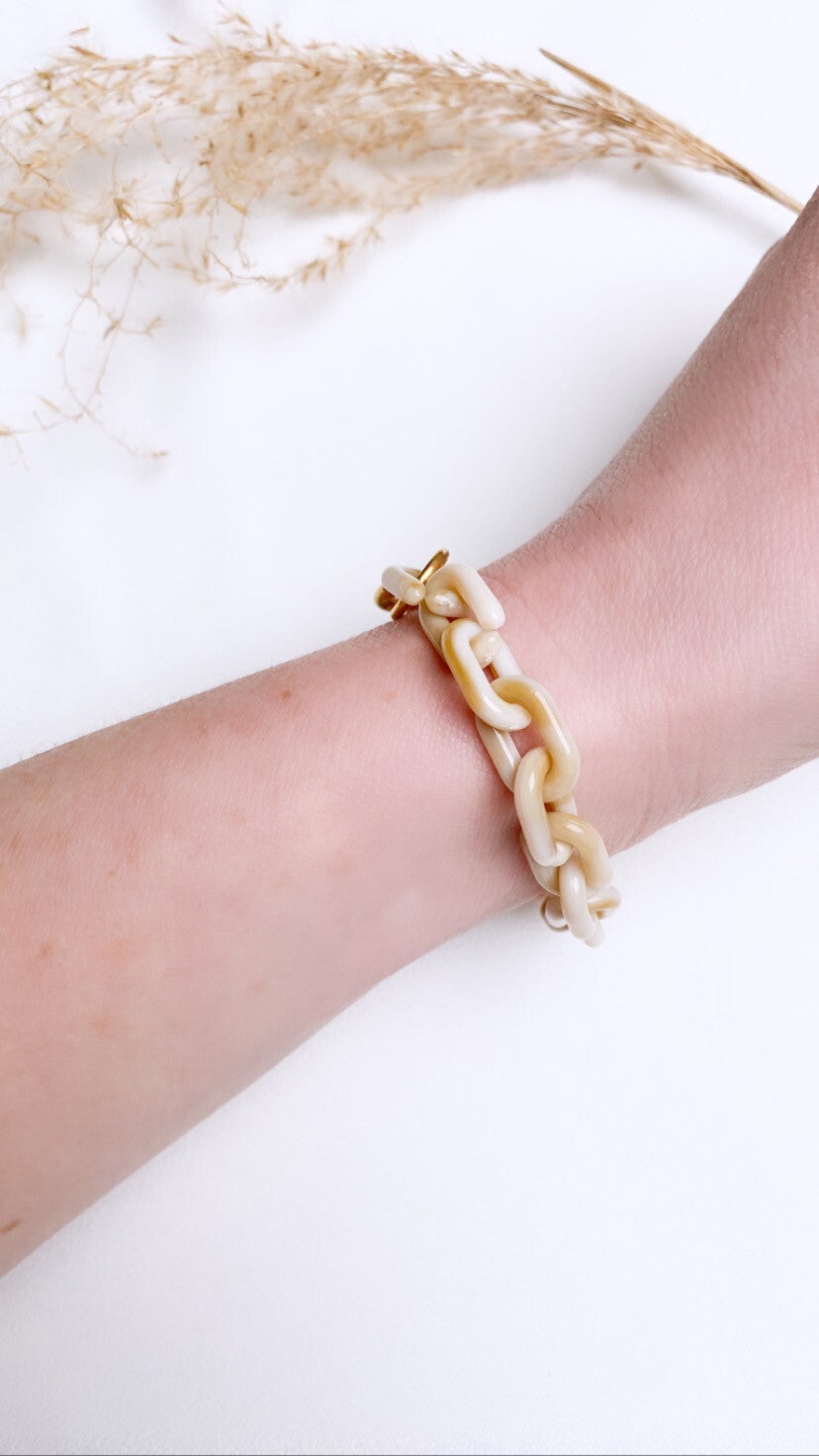 Mooie armband in beige kleur met elegant slot in stainless steel