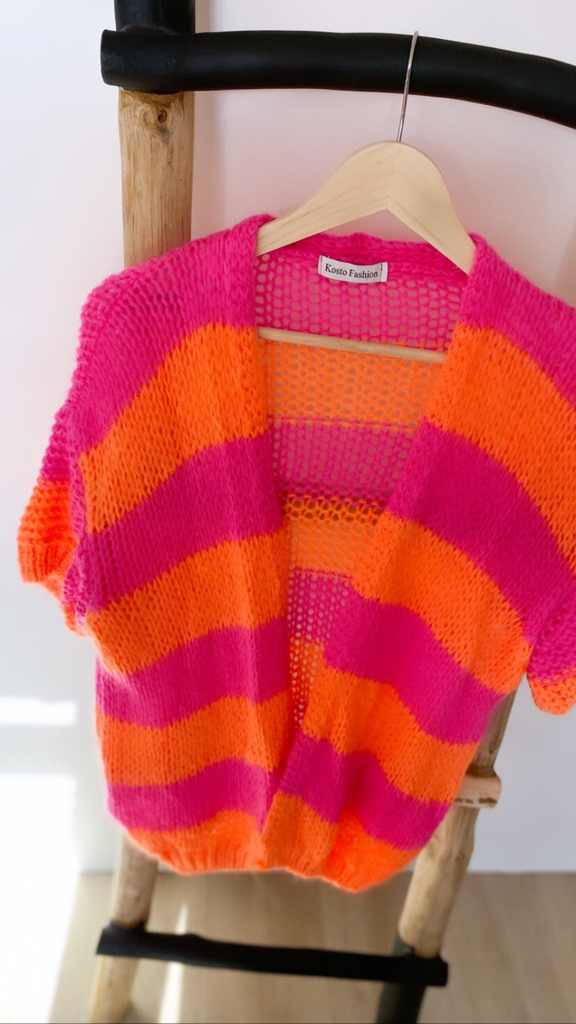 Losse knit gilet van Billie Jewels in fushia en oranje kleur