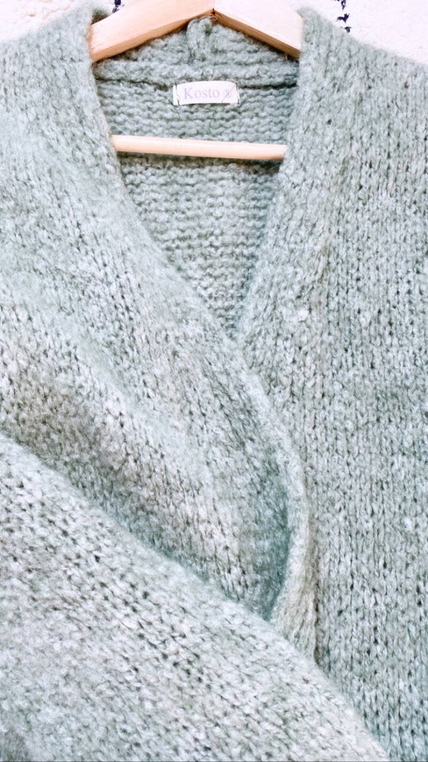 Lange gilet knit van Billie Jewels in khaki groene kleur