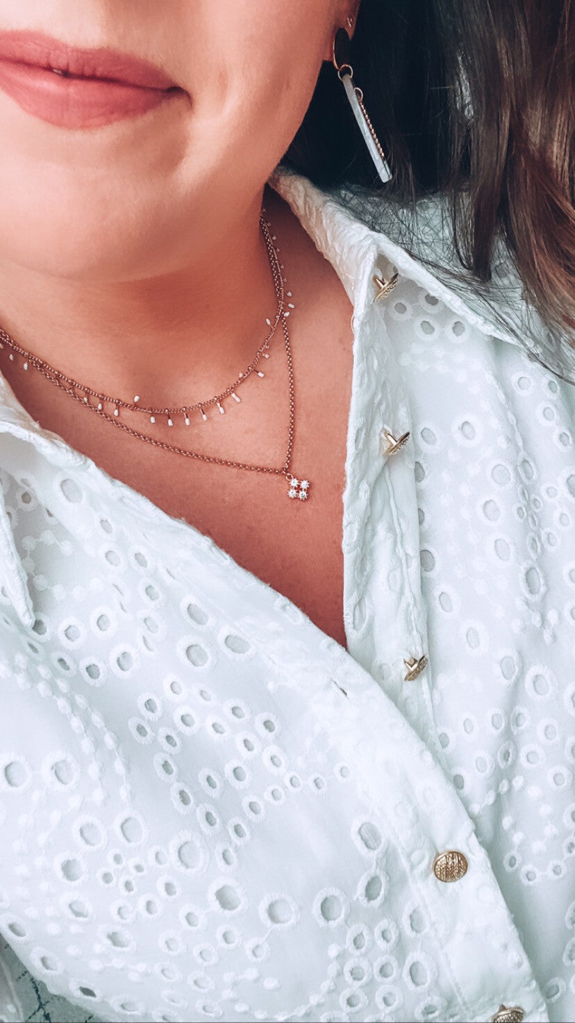 Handgemaakte goudkleurige dubbele ketting. Vrouwelijk en elegant.