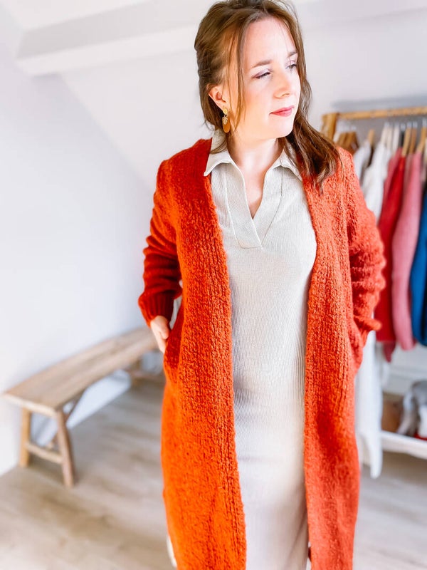 Lange gilet knit van Billie Jewels in roest oranje kleur