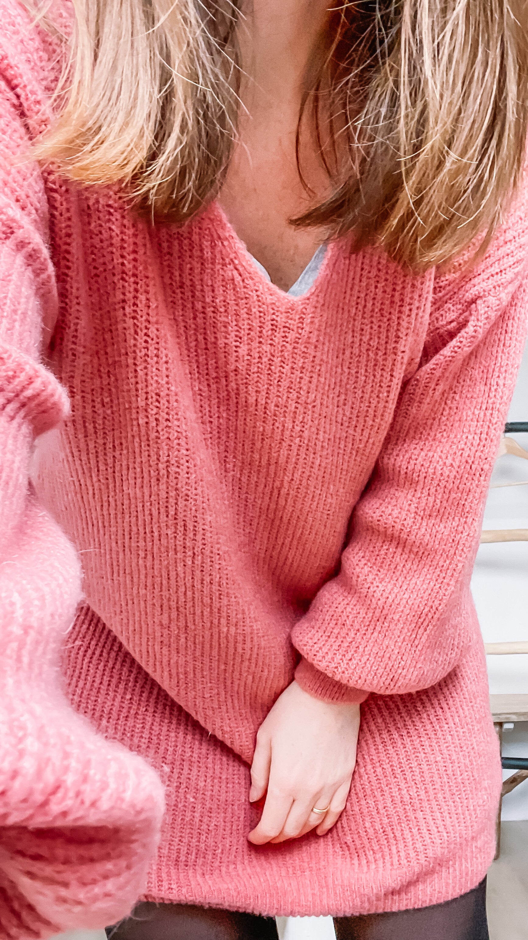Losse knit dress van Billie Jewels in mooie diepe roze kleur